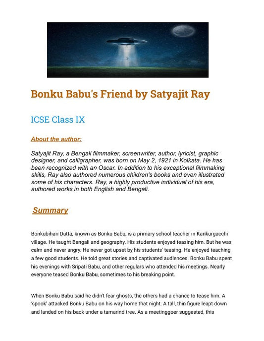 Bonku Babu's Friend | Satyajit Ray | PDF Detailed Analysis for Exam Prep.