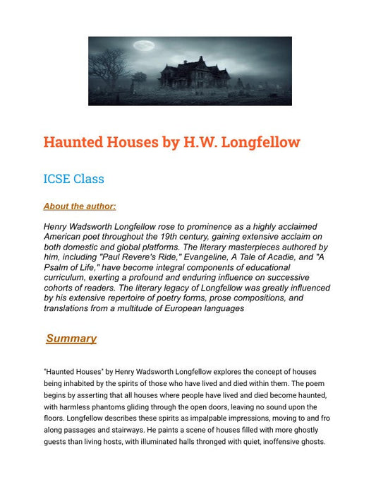Haunted Houses | H. W. Longfellow | PDF Detailed Analysis for Exam Prep.