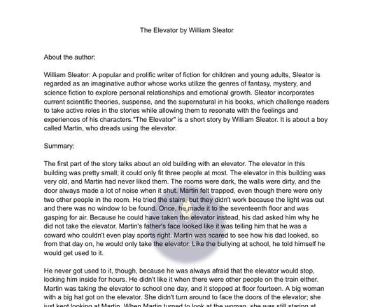 The Elevator | William Sleator | PDF Detailed Analysis for Exam Prep.